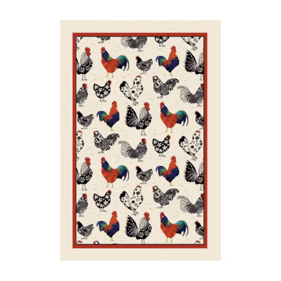 Köks- eller gästhandduk motiv Rooster. 100 % Bomull. Stor nog att ha som duk också.